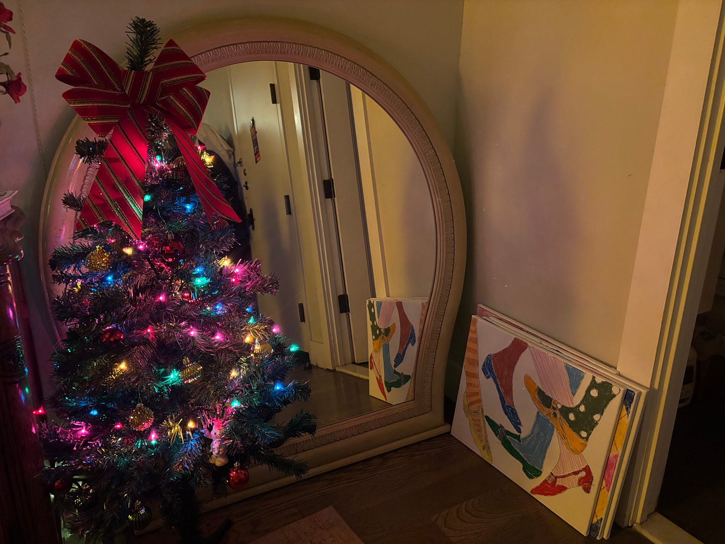 We decorated the tree with colorful lights. Growing up, I never had colorful tree lights, so this felt especially sweet — like giving my younger self something small she didn’t know she was missing.